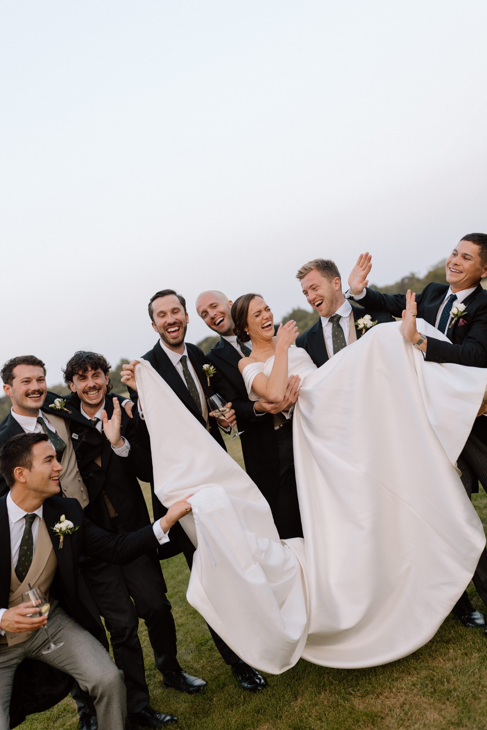 As the sun began to set, Abigail and Christian embraced golden hour with their bridal party, capturing stunning portraits in the soft, glowing light. The grounds of Ivy Lodge provided endless opportunities for romantic photography with their elegant gardens framing each moment beautifully.