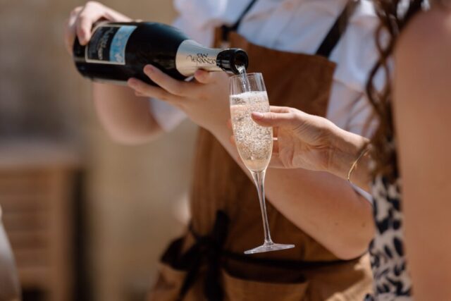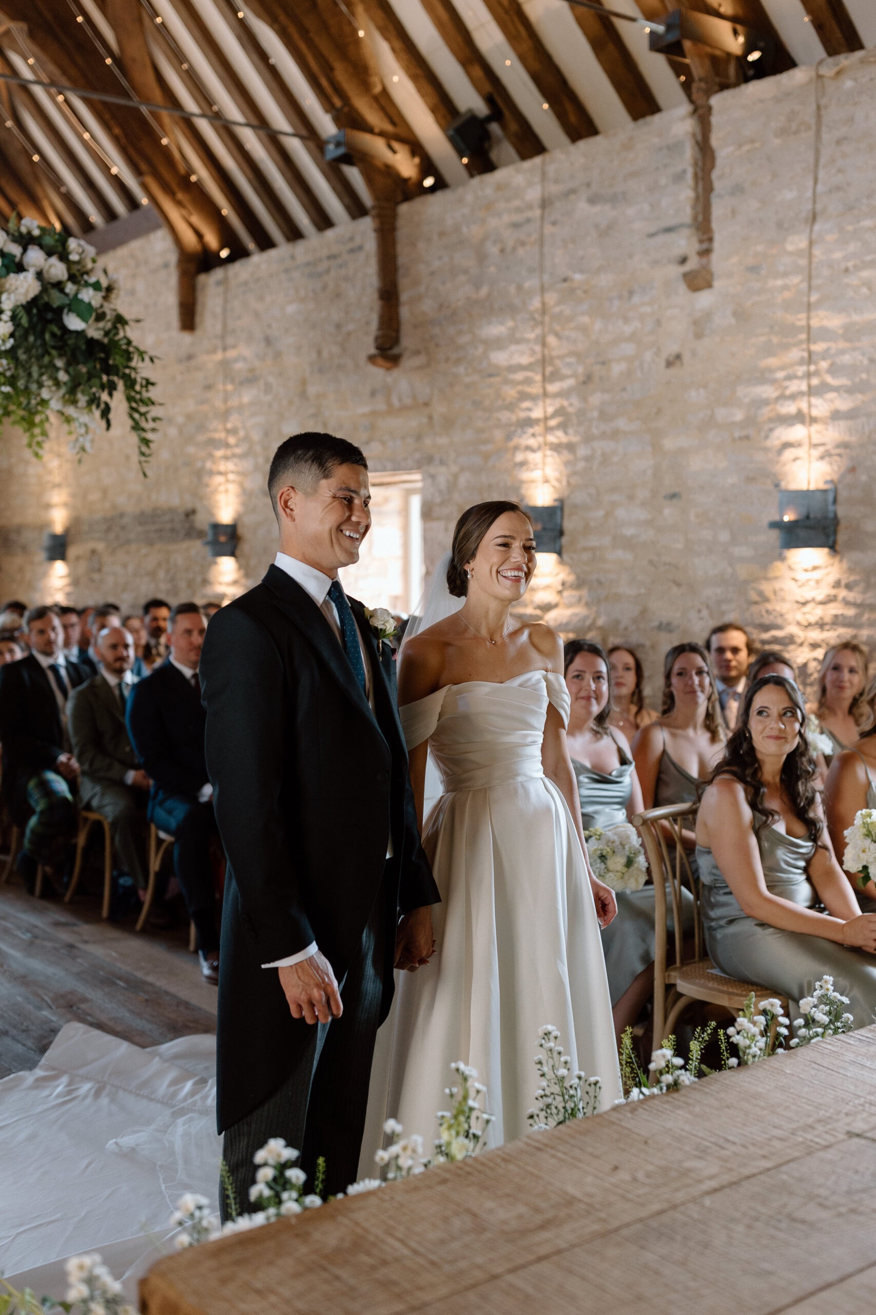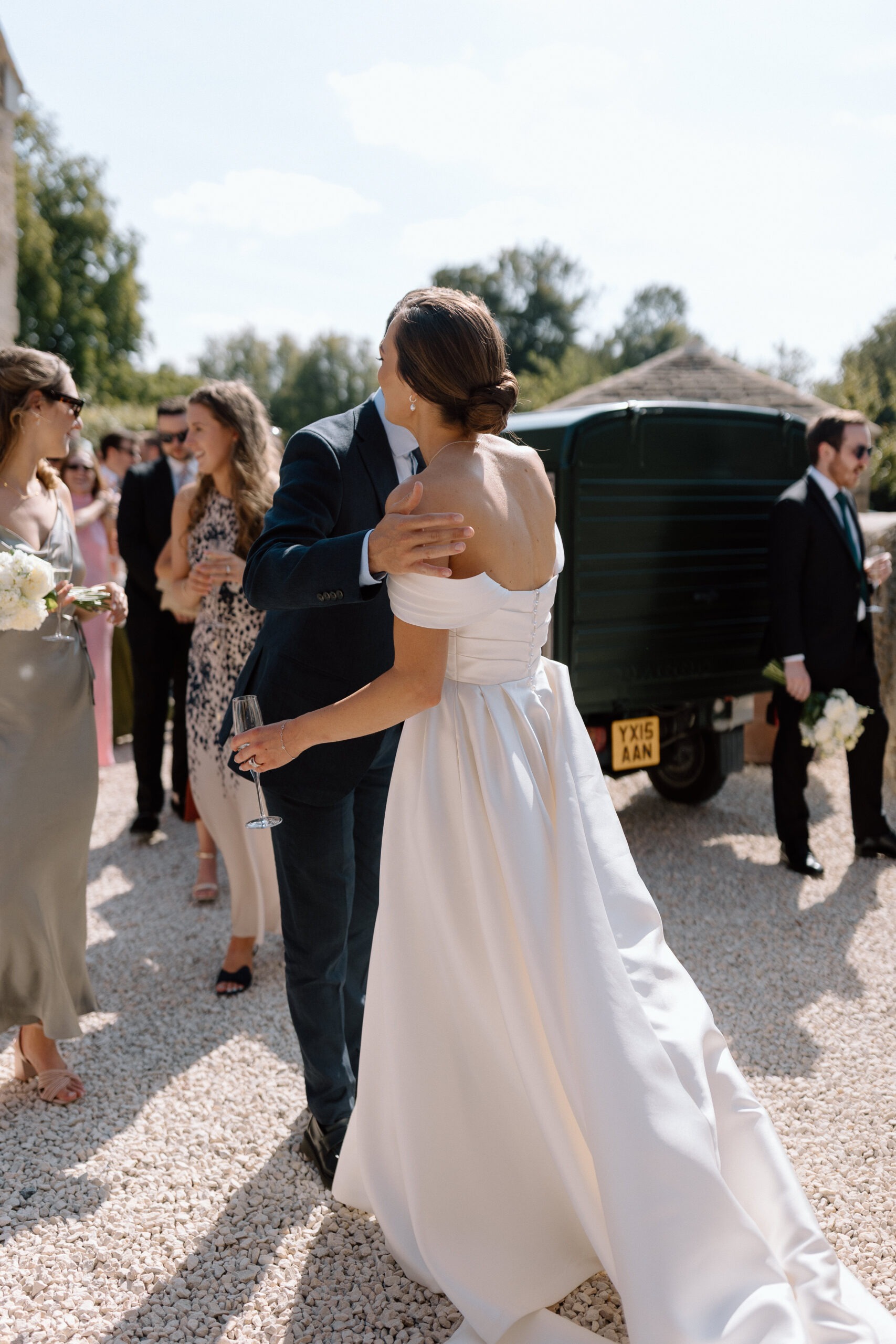 After the ceremony, guests enjoyed refreshing drinks outside, soaking up the serene Cotswolds surroundings. The wedding breakfast was a true feast – a delicious celebration meal that reflected the couple’s love for food and togetherness. Later, as the evening unfolded, cocktails were served outside, creating a relaxed and stylish atmosphere for their cocktail hour.