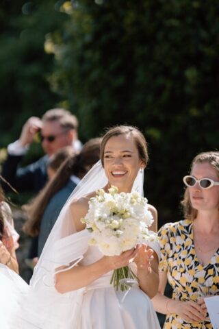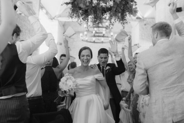 The ceremony was an emotional highlight as Abigail walked down the aisle with her dad, accompanied by the delicate sounds of a live string quartet. Guests then headed outdoors for the confetti throw, followed by bubbles by the gallon!